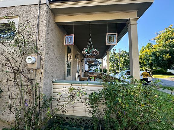 Outside, the stucco and vinyl-sided exterior exudes curb appeal on a rectangular 3,824 sq ft lot along a quiet neighborhood street. Relax on the beautiful front deck porch, a shaded retreat overlooking the tree-lined block. Off-street parking for up to two cars is available, and the home's proximity to bus lines makes commuting simple. The full unfinished basement provides ample storage, while the attic offers untapped potential.
