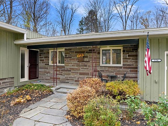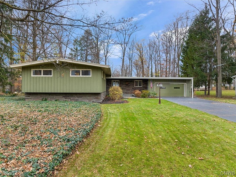 Expect to be impressed by this beautiful mid century modern home conveniently located minutes from both the village of Camillus and all major shopping — Target, Wegmans, Marshalls, etc.! True to style, you will see cathedral ceilings and huge windows (family room and dining room windows new in 2022) creating a light and inviting feel. Cozy up this winter next to either of the two gas fireplaces or enjoy the living area overlooking the meticulously kept backyard with patio and fire pit. The updated kitchen (2018) is perfect for everyday cooking or large entertaining with white soft close cabinets, granite countertops, marble backsplash and new SS appliances (2023). There are three bedrooms and two full baths upstairs plus an additional bedroom and bath in the lower level. With two furnaces and two air conditioning units, this home is highly efficient. West Genesee school district. Tour today and make yourself at home! Showings begin Saturday 11/11 at 10am.
