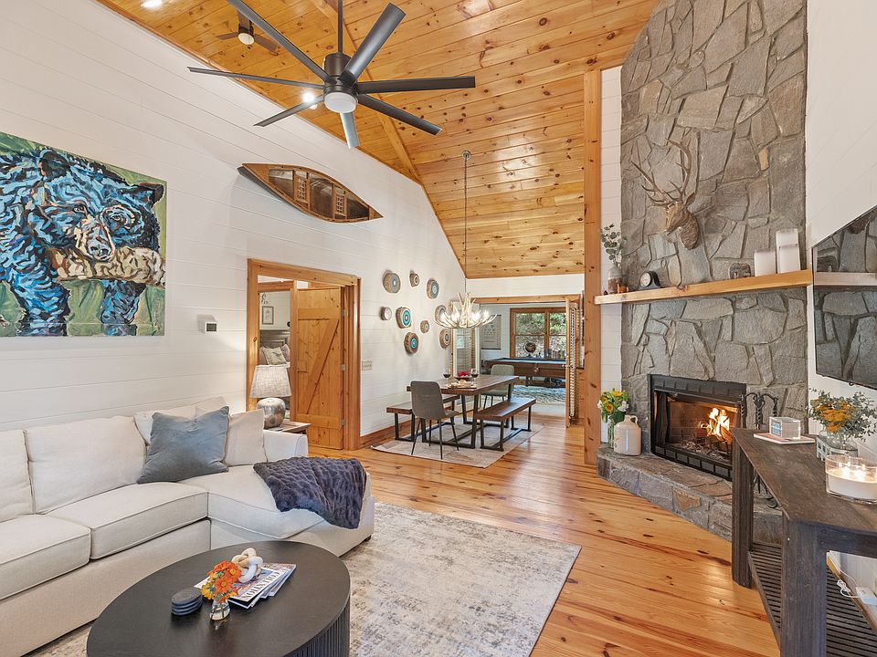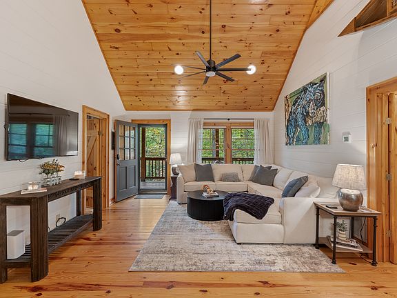 Taking weekly or monthly reservations for fall/winter season at 7k/month or 2k/week! RENT FOR SEASONAL MONTHS IS 15K AND CURRENTLY AVAILABLE FOR SUMMER 2026. Gorgeous COZY cabin located in Trillium Country Club. Beautiful open great room with vaulted ceilings and stone fireplace, HUGE front porch, outdoor firepit, oversized private BONUS room featuring a queen size sleeper sofa and arcade area. TWO open air decks, perfect for grilling or admiring the stars. Primary suite offers ensuite bathroom. Guest suites are privately tucked away from the rest of the home. Home is located on a private road in Trillium Golf & Country Club and MINUTES to Downtown Cashiers AND Downtown Highlands. Just a short walk to Glenville Lake and SO MANY stunning hikes and waterfalls.