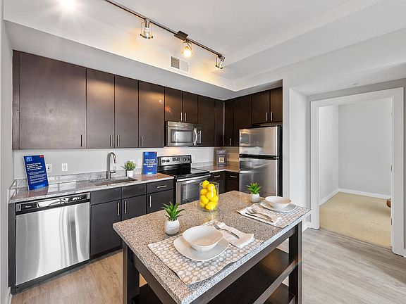 - Exterior features: , Bicycle storage, Controlled-entry access, Courtyard, Floor-to-ceiling windows*, Game Room, LEED Certification, Living Green: Eco-friendly community, Moveable kitchen island*, On-Site Maintenance, On-Site Management, Package Receiving, Pet friendly - Puppies and kittens welcome, Polished granite countertops, TV Lounge, Upper-level terrace and clubroom, View Type: Skyline views, Wood-style plank flooring in living areas