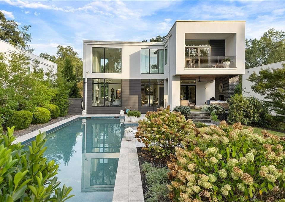 Welcome to your modern sanctuary in the heart of LaVista Park, Atlanta—a stunning five-bedroom, six-bathroom residence that redefines contemporary living. Spanning just under 4,000 square feet, this home boasts expansive picture windows that invite natural light to dance through every room, creating a warm and inviting atmosphere. As you step into the grand foyer, you're greeted by soaring double-height ceilings and an elegantly floating staircase that sets the tone for the rest of the home. The open-concept main level seamlessly connects the living, dining, and kitchen areas, all enhanced by designer lighting fixtures that add a touch of sophistication. Floor-to-ceiling glass doors blur the lines between indoor and outdoor spaces, making it effortless to entertain or simply enjoy the tranquility of your surroundings. The inviting living area features a striking book-matched fireplace mantle and custom built-in bookcases, perfect for displaying your favorite reads and cherished memories. For after-dinner gatherings, the sleek wet bar ensures that your guests are always well taken care of. The gourmet kitchen is a chef’s dream, complete with flat-paneled cabinetry, exquisite quartz countertops, island with prep sink, and top-of-the-line stainless steel appliances. A generous walk-in pantry adds practicality, while hardwood floors transition seamlessly around the cooking areas. Just off the kitchen, the outdoor lanai beckons, ideal for cozy evenings by the fireplace or weekend barbecues with its convenient gas hookup. The showstopper of the outdoor space is undoubtedly the stunning lap pool, complete with a sun shelf for relaxation and enjoyment. On the main floor, you’ll find a beautifully appointed bedroom with an en suite bath, offering privacy and comfort for guests. There is also a lovely powder room with elegant wall coverings and a marble vanity. Venture upstairs to discover a spacious loft landing that leads to the primary suite and two additional guest bedrooms, each with their own en-suite baths. The oversized primary bedroom serves as a peaceful retreat, with floor-to-ceiling glass doors that open to a private patio overlooking the meticulously landscaped grounds. Ample natural light floods the space, creating a serene ambiance. The spa-like primary bath features a luxurious soaking tub, a dual vanity, and an impressive frameless glass walk-in shower with a rain head, double shower heads for a truly indulgent experience. The custom walk-in closet, with its thoughtfully designed cabinetry, makes organization a breeze. Descend to the terrace level, where an expansive entertainment area awaits, along with a guest bedroom and bath, perfect for hosting friends and family. Completing this modern masterpiece is a double garage, framed by a striking white stucco and black brick facade, adding to the home's contemporary curb appeal. This home isn't just a place to live—it's a lifestyle. Welcome to LaVista Park, where modern elegance meets the comfort of home.