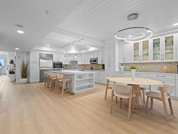 Discover this truly exceptional 3-bedroom, 3-bathroom condominium offering mesmerizing views of the Intracoastal Waterway. Redesigned with modern elegance, this home features a spacious chef's kitchen equipped with Sub Zero, Monogram, and Viking appliances, along with an impressive six-foot-tall built-in double-door wine cellar. This stunning residence boasts 9-foot ceilings, copious custom built-ins, and spa-worthy bathrooms. Beautiful plank tile flooring extends across the 2,500 square feet of living space. Impact-resistant windows and sliding doors were installed in 2025 along with custom light filtering and room darkening electric shades for maximum comfort and peace of mind. The expansive light-filled lanai has been thoughtfully converted into year-round living space, including air conditioning, cabinetry and a new ceiling with recessed lighting and in-home theater speakers. The HVAC system was replaced in 2020 and the water heater in 2021. A private one-car garage is conveniently situated under the building. Dolphin Bay offers an updated clubhouse, fitness center, premium Hartru/clay tennis courts, a day dock for boating and fishing, as well as a pool and spa. This lively, pet-friendly community is home to just 50 owners. Enjoy easy access to the beach and village via trolley, where you can explore shopping, live entertainment, and diverse dining options. Experience unparalleled sophistication and comfort in this exquisite residence. Luxury looks like home at Dolphin Bay.