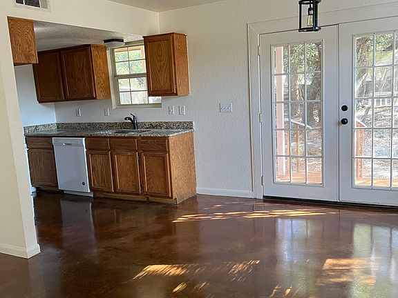 This charming home, in the sought after Rivermont subdivision, has stained concrete floors down stairs and carpet upstairs, granite kitchen countertops and a walk in master closet. It has central AC and heat, and sits off the road on a hill on a 1/2 acre lot. Some pets are permitted at owners discretion, with an additional deposit and pet fee. Enjoy hill country living, with city amenities near by. Tenant Is responsible for all utilities.