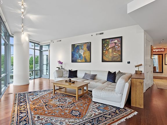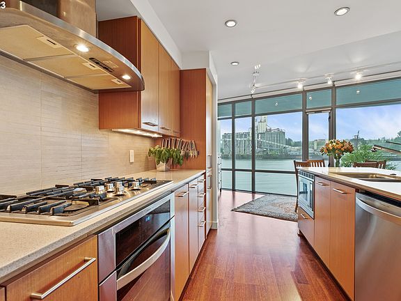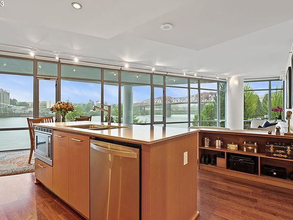 Dynamic & unobstructed view of Willamette River and green way! Spacious floor plan with an abundance of natural light. Gourmet kitchen- perfect for cooking and/or entertaining! Primary suite features walk-in closet and bathroom with walk-in shower, soaking tub and double sinks. Unit features dual track lighting in living room, Ecobee dual zone thermostat, Portland closets in both bedrooms & hallway and large capacity washer/dryer with steam feature. Phantom patio door & window screens. Enjoy quiet evenings on the patio with city & river views! Secure building w/high-end finishes & great amenities, including 24/7 concierge, gym & sauna. Walk to parks, shops & restaurants!