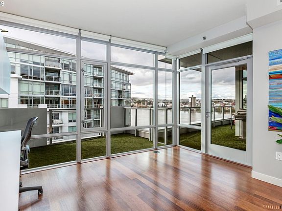 Look out over the Willamette River through floor-to-ceiling windows, and enjoy the extra-large deck with room for seating and grilling. Notice the complete attention to detail throughout, with custom built-ins and design choices. 3rd bedroom gives flexibility as an optional den or office. Includes 2 parking spaces, storage unit. Building amenities: gym, sauna, 24-hour concierge. 3rd bedroom non-conforming