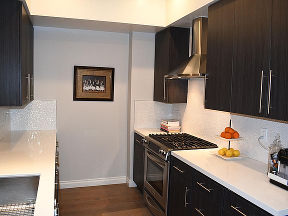 Two bed two bath condo updated throughout with current, high quality finishes. White oak floors, plush bedroom carpet, quartz countertops, custom built closets and vanity. Enjoy plenty of natural light in this southwest facing open floor plan with high ceilings, spacious gourmet kitchen with upgraded appliances and abundant cabinet space, wet bar, large master suite with fully upgraded master bath. In-unit washer and dryer, French windows opening out to a serene balcony with skyline views, two separate gated parking spaces, sparkling heated pool, and convenient central location. Tenant responsible for gas and electric.
