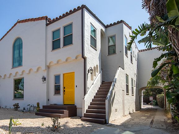 This 1,539 square foot home is newly renovated (as of summer 2025). New windows, doors, appliances, kitchen and bathrooms in the place, while still maintaining the historic Spanish Revival style. It is a 3 bedroom, 2.5 bathroom downstairs unit in an up-down duplex. The front yard was redone with new landscaping and a dedicated patio area for your outdoor furniture. A Ring doorbell is provided.