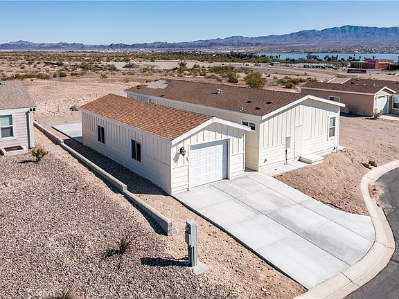 Looking to live the ultimate Lake Lifestyle, don't miss this home with lake views! Located a few short blocks from the California shoreline of Lake Havasu with 2 marinas that allow short-term and long-term slip rentals, plus miles of off-roading trails. Located in the gated community of Vista Del Lago which offers a community pool, spa, clubhouse, showers, putting green and workout room, not to mention you OWN YOUR LAND. This home has a GARAGE, oversized patio that has access into the home through two sliders which lead you into the kitchen and den, with amazing light throughout the home from the many large windows, with 2 generously sized guest bedrooms, guest bathroom and a well sized primary bedroom with an ensuite private bathroom. New luxury vinyl floors installed March 2025. The stainless steal appliances are included!