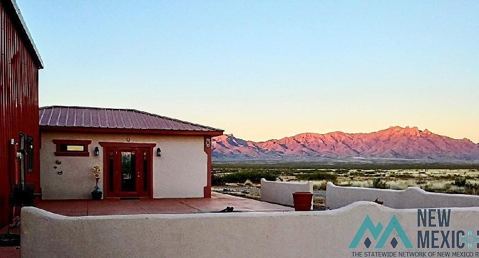 The nucleus of this beautiful and unique home is built inside one of the two huge shops. A secret door opens to the newer edifice, built on the Florida Mountain side of the home, providing a luxurious large sunny lounge. Almost floor to celing windows showcase the magnifiscent views of the Floridas to the east and Cook's range to the north. This relaxing space has a fire place, and designer French doors that open to an exqusite courtyard, shared with the main part of the house. This home is clean and immaculately kept, and built to be low maintenance so you can enjoy a liesure lifestyle in the sunny Land of Enchantment Two huge shops, fully insulated and excellent wiring, plus a refined well house with smoothe running water system. Lots of acreage for walking on your own private space, 4-wheeling, or just to protect your gorgeous sitelines. Everything installed in this home or in these shops has been the high end product and/or engineering. Gotta check this one out!