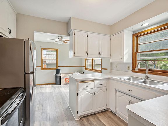 Oversized detached garage. Huge basement family space including bar. Vinyl siding.