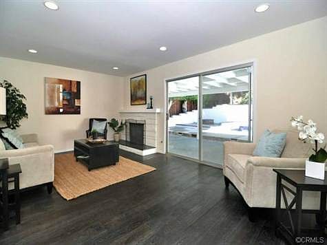 Beautiful and charming single story pool home. Very well maintained. Dark wood engineered flooring. Gorgeous remodeled kitchen with Quartz countertops, white cabinets, and stainless steel appliances. Large breakfast bar area. Scraped ceilings and recessed lighting. Beautiful stone fireplace. Large laundry room and mud room with storage. Open and airy Master Bedroom with private bathroom. Newer vanity and counters in bathrooms. Three additional spacious bedrooms as well. Gorgeous rear yard with covered patio and sparkling pool and spa. Lovely landscaping and trees add privacy in the rear yard.