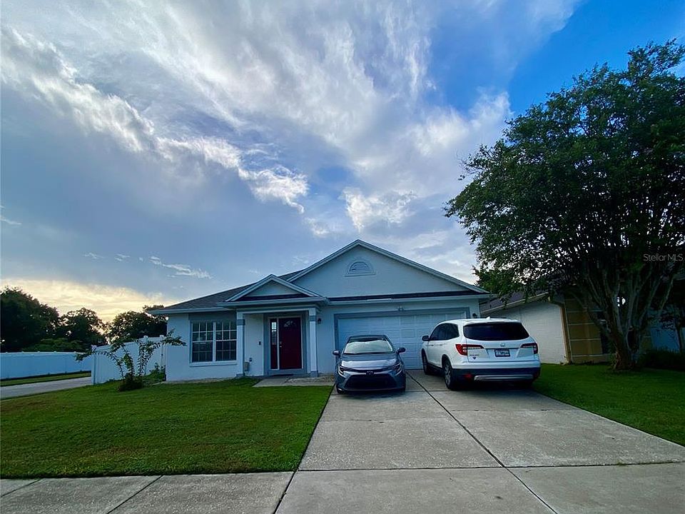 Short Sale. Corner lot home! This 3-bedroom, 2-bathroom single-family home features a fenced backyard and a convenient two-car garage. The kitchen features granite countertop and stainless steel appliances. Split floor plan with vaulted ceilings and a fenced backyard. The community offers excellent amenities like a community pool, a playground, baseball and soccer fields, a dog park, and walking trails. Conveniently located just minutes to the Waterford Lakes Town Center where you'll find the best restaurants and shops.