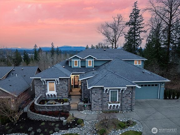 Elegant Mary Hill floorplan, largest of the Estate Collection, offers breathtaking, unobstructed views of the Cascade Mountain Range, perched high above Redmond Ridge golf course's 15th hole Par 3 green. Exceptional designer upgrades throughout this home. Luxurious Primary Suite features a built-in dresser, matching nightstands and king headboard. Gorgeous primary bathroom complete with double vanities, free standing soaking tub, separate shower and amazing circular walk-in closet including perfectly designed closet system. Meticulously designed 2,000 bottle wine room with fully climatized wine storage system. State of the art theater room, complete with sectional sofa. Beautiful 1,000 sqft view deck, ideal for entertaining large groups.