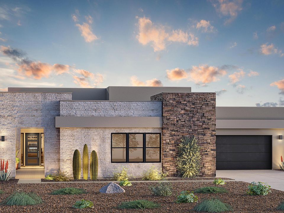 The Sedona home design offers effortless entertaining for family and friends. Welcoming portico and courtyard at the front entryway lead into gorgeous open-concept living. Stunning great room with double sided 60' fireplace and grand multi-slide stacking door. Great room, casual dining, and kitchen have soaring ceilings and open to a generously sized covered patio for indoor/outdoor Arizona living at its finest. Varying ceiling heights up to 14'. The well-appointed kitchen has plentiful counter and cabinet space in addition to a generous walk-in pantry. The expansive primary bedroom suite is inclusive of dual vanities, large soaking tub, and a luxe shower with seat. Private casita can be used for a separate guest suite, gym, or secluded home office. Home is offered to-be-built.