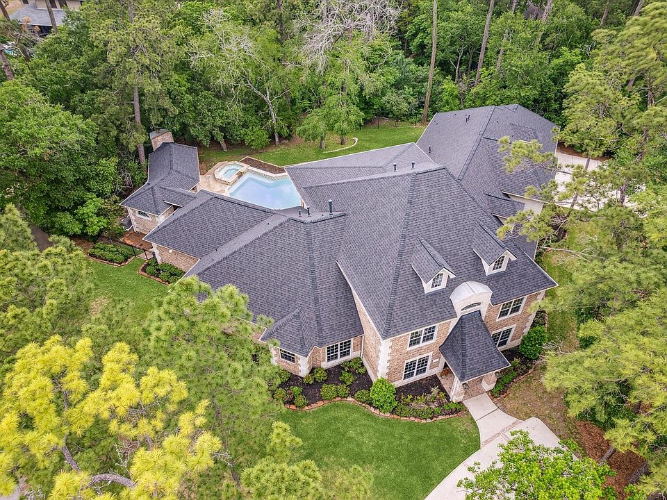 ***RARE OPPORTUNITY*** Nestled on a 3/4 of ACRE cul-de-sac lot in the prestigious Woodland Hollow. This stunning custom home offers 7,334 sq.ft. of luxury living space w/5-6 bed/7.5 bath/3-car garage. NEW ROOF 03/2025. Surrounded by beautiful mature trees, heated swimming pool & hot tub, fully-equipped covered outdoor kitchen perfect for relaxation & entertaining. The heart of the home is an opened family kitchen featuring a large island with top of the line stainless steel appliances w/Thermador refrigerator & gas cooktop.