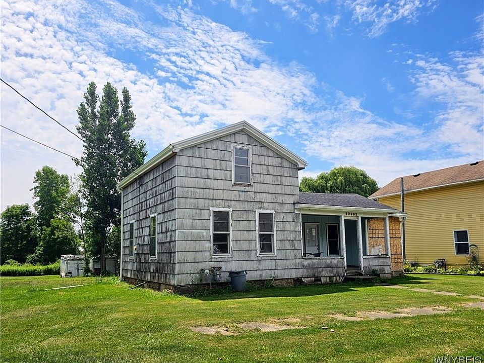 Welcome to this captivating home just a short stroll away from the scenic Erie Canal on 1.7 acres. This charming property offers a unique opportunity for those seeking a project to create their dream home. While it requires some renovations to bring it to its full potential, a lot of the "heavy lifting" has been done already, including a modern first-floor bath, bedroom & laundry, along with a vaulted kitchen space. This house presents a canvas of possibilities in an idyllic setting. Step inside and imagine the transformation that awaits. Embrace the opportunity to restore and revive the unique character of this dwelling, adding your personal touch to every corner. New hot water heater & plumbing. Attached 30x40 garage has a sewer line run for bath & was in the process of being converted into living space (not included in square footage). Install garage doors back in for ample car storage or put your finishing touches for a massive great room/entertaining space. Home sold AS-IS.