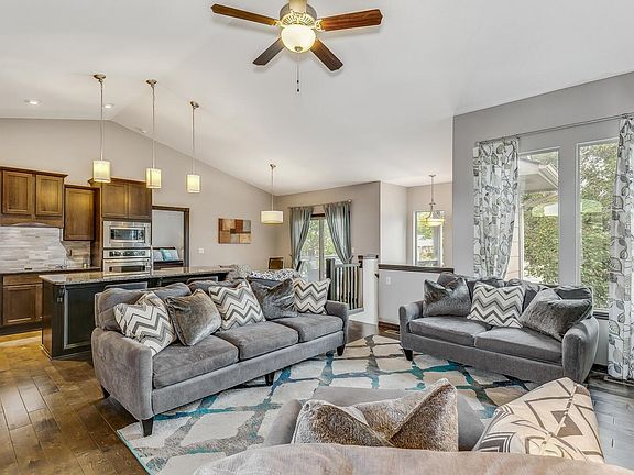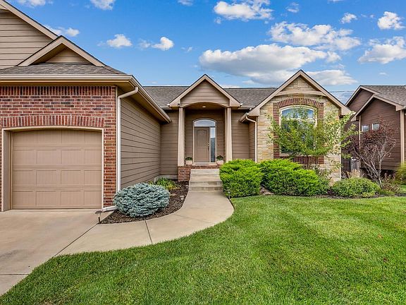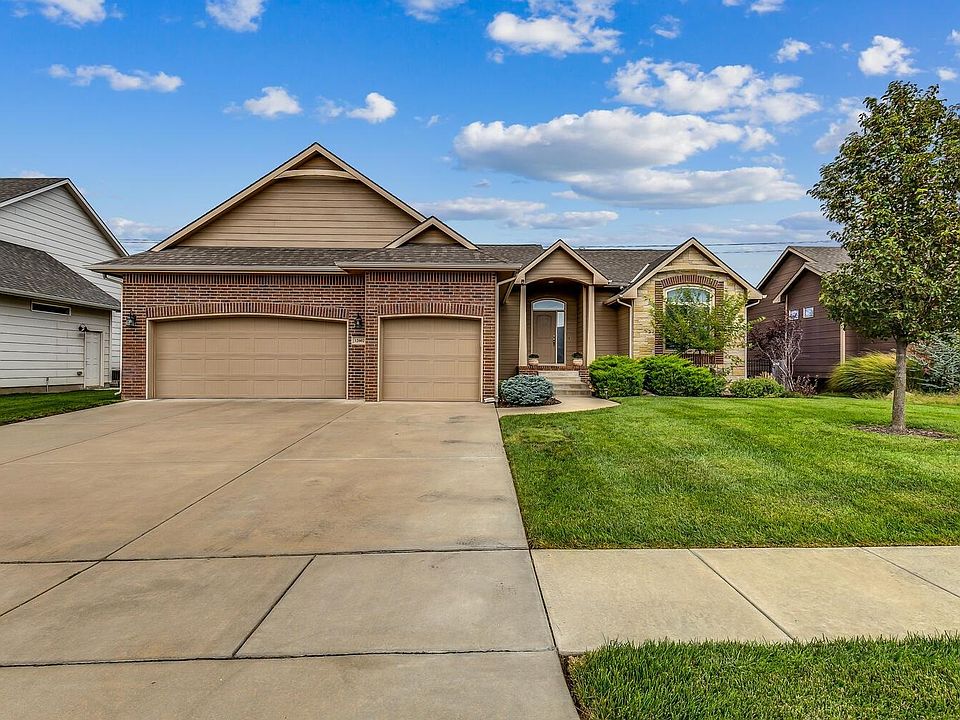 Beautiful previous model home, 3 bedroom, 2 bath, split bedroom layout, with 3 car garage and terrific curb appeal. You will love the home's open floor plan, neutral interior paint color, vaulted ceilings, large picture windows for refreshing natural lighting, engineered wood floors, and separate laundry room with drop zone shelving. The kitchen is a dream with a walk in pantry, granite counter tops, an island that provides additional seating and lots of room for food prep. All of the stainless steel kitchen appliances will remain for the new home owner, along with the washer and dryer which will make settling in a breeze. The home has both a covered deck for morning coffee or grilling out and a mid level walk out to the lush green backyard with sprinkler on an irrigation well. The owner's suite is spacious with a private luxurious bathroom that has 2 sinks with granite countertops, separate water closet, fabulous walk-in tiled shower, and a substantial walk in closet. There are two more nice sized bedrooms and a hall bath with granite countertop and transom window that allows natural light into the room. The basement provides a blank canvas with space for the new owner to add a family room, 2 bedrooms, bathroom and storage room that can be finished to your liking adding instant equity to your home. Great location and in the Goddard school district. Make your appointment to see this one today!