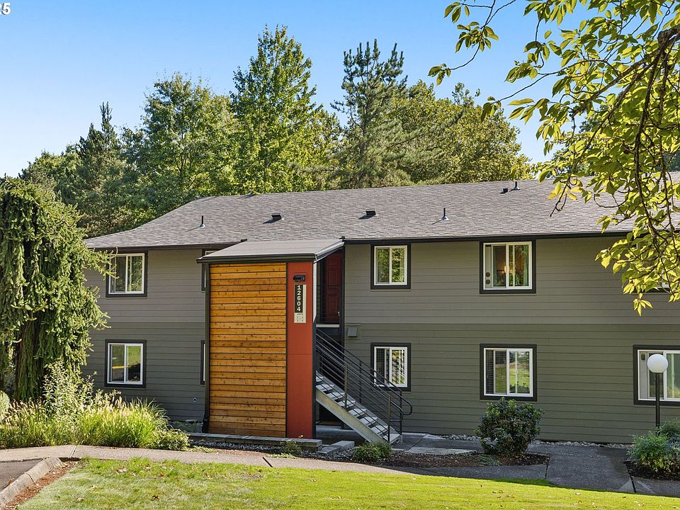 Location, location, location. Welcome to this inviting 2-bedroom, 1-bath, second-floor condo in a park-like setting. Unit offers laminate floors, carpet in the living area, wood-burning fireplace, efficient galley kitchen, and private, covered balcony with storage closet for outdoor relaxation. Major building updates were completed in 2022, including a new roof, siding, windows, balcony, and front door—giving you peace of mind for years to come. Community amenities feature a seasonal outdoor pool, fitness center, sport court, designated parking spot, and free in-building shared laundry. Near grocery store, restaurants, library, shopping, walking trails and Sunset Transit Center. This is a great value in the 97229 zip code.