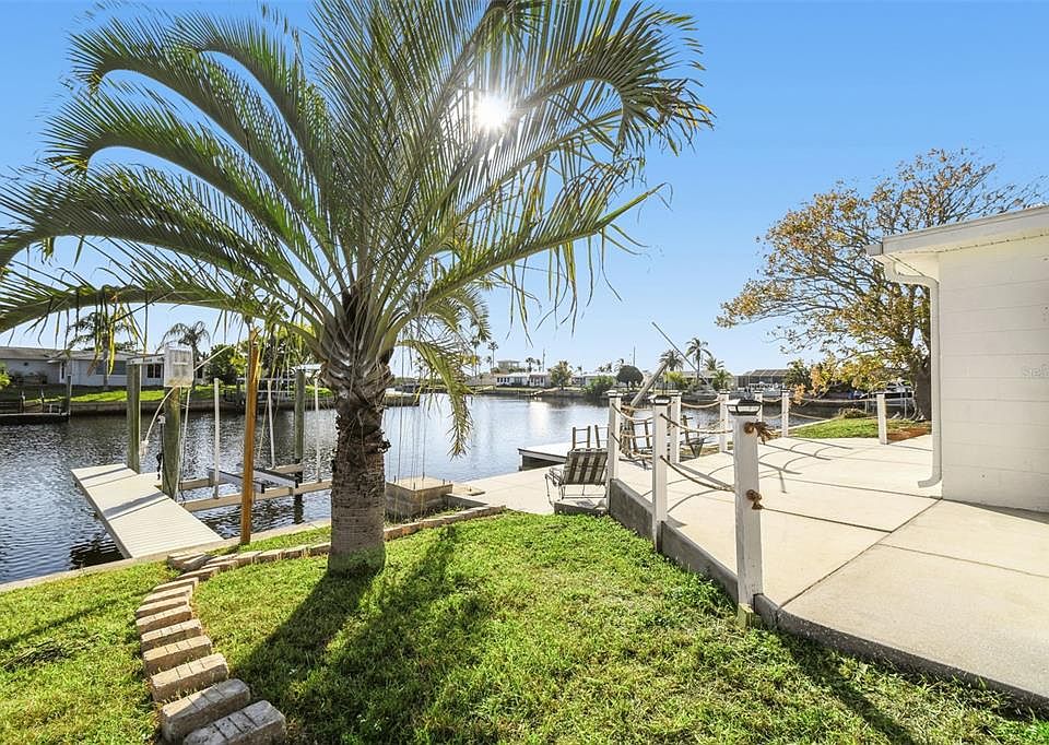 A Waterfront Gem on a culdesac– This home is WORRY FREE with new plumbing, new electrical, New roof in 2019, and Stainless Steel appliances that have never been used, hot water heater new in 2024. Discover coastal living at it's best in this stunning waterfront home overlooking a wide canal surrounded by eagles, ospreys, dolphins, and manatees. This home has been fully renovated by a licensed contractor and is beyond move-in ready! It’s a rare waterfront property where your back lot is a corner lot. A new floating dock makes enjoying the water effortless. Located in desirable Leisure Beach. You’ll enjoy direct Gulf access with your 10,000-lb boat lift—just 10 minutes to open water for island hopping or world-class fishing and water front restaurants. The backyard is your private retreat, fully enclosed with fencing, and screened lanai—perfect for morning coffee, shaded outdoor dining, or entertaining friends with breathtaking views. There is an outdoor shower, and covered fish cleaning station, surrounded by a bar where friends and family can gather. Inside, high-end finishes include quartz countertops, shaker cabinetry, Luxury Vinyl & tile floors, with sliding doors that open to a stunning view and out door patio perfect for a fire pit to sit around and watch the majestic sunsets. Don’t miss this opportunity to own a million dollar view with a home that combines natural beauty with the best of Florida’s Gulf Coast lifestyle. Call today for your private showing!