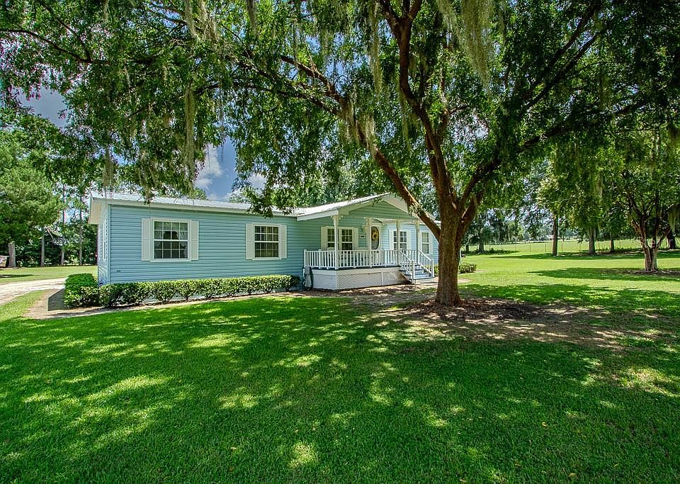 Immaculate 3BR/2BA + Office Manufactured Home with Workshop on Fenced Lot! This beautifully upgraded home sits at the end of a quiet subdivision, offering privacy, stunning views, and convenience—just minutes from Gainesville, Alachua, schools, and shopping. Inside, enjoy crown molding, bead board walls, luxury vinyl plank flooring, and a cozy electric fireplace insert (original chimney closed off at roof). The spacious kitchen features rebuilt oak cabinetry, a pantry, and broom closet. The owners’ suite boasts two large closets, dual sink vanity and walk in shower. Guest bath includes a tub/shower combo and freestanding vanity. Additional flex room perfect for an office or playroom with built in shelving. HVAC (2019), water heater (approx. 2020), and metal roof (2016). Exterior highlights include full fencing, lush landscaping, towering oaks, added gutters (2025), and an expanded septic drain field. Bonus 20x40 workshop with roll-up door, power, and lighting—plus a side lawn tool shop and rear utility shop. Move-in ready and meticulously maintained!