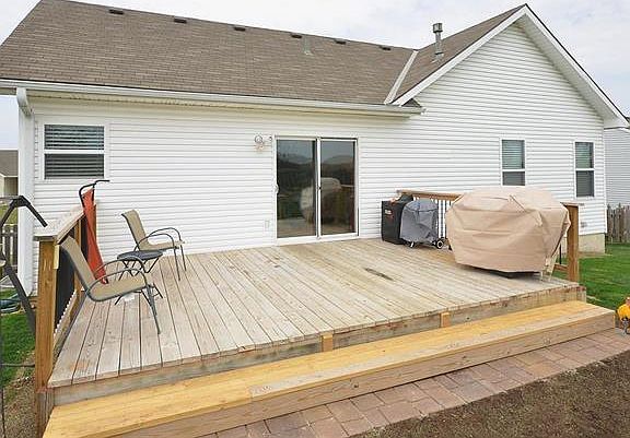 You will love this open floor plan, finished basement w/full bath, family room or 4th bedroom. Awesome workshop w/cabinets or tandem garage. Lots of storage in lower level, all new carpet, paint, hardwood in the kitchen, deck, blinds, basement entertainment in Lower Level. Great neighborhood with tons of walking trails.