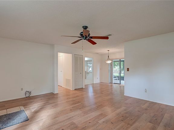 This 2 bedroom, 2 bath home is in a split layout with a master plus bath on the east side and the second bedroom on the west side adjacent to the guest bath. The master bath shower has recently been upgraded with new tile and new fixtures. The screened lanai lies off of the rear thru 6 ft slider doors. The kitchen with pantry has a new SS large refrigerator with ice maker.