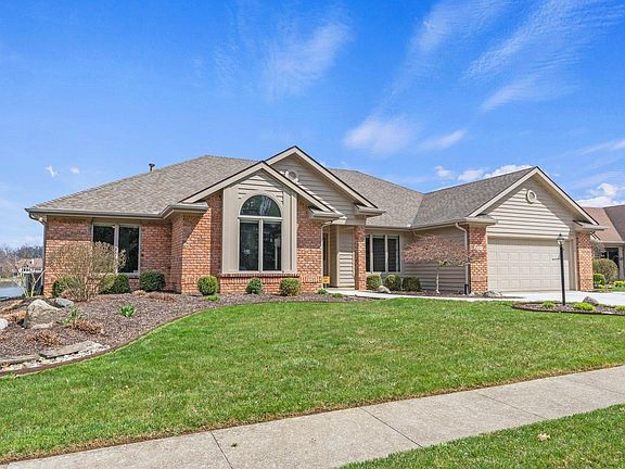 EXTRODINARY VIEWS and an ENTERTAINING FLOOR PLAN is what you get with this contemporary styling, open concept, partial-split bedroom home. Nothing says relax more than having a continuous view from throughout the home across the 3.4 acres pond which does allow for residents and their guests to enjoy simple water sports. The home is perfect with a small private beach for any buyer group who love to entertain or who simply want space for those who come to visit. The kitchen includes granite counter tops with an accent island, luxurious Electrolux & Bosch stainless appliances, enormous amounts of storage in custom cabinetries, and plenty of warm natural light from the 10 feet bow window. The deluxe enclosed porch is ideal for early morning coffee and late afternoon cocktails after a long day’s work schedule. The large rear deck allows any grilling station with room to sunbath or party. The sunrise across the pond is picturesque. The owner suite, again with 9 feet of beautiful views, offers glass enclosed shower with separate jetted garden tub to complete that process. Imagine dinners in the kitchen with 10-foot wall-of-windows overlooking the pond, serenity at its best. When you play in the huge open, roughly 27x17 lower level nothing changes; the 16-foot views remain, and there's space for a wet bar area if you are so inclined. Tiled back-splashes, luxury tile and hardwood flooring, marble surround and decorative gas log fireplace in the great room, plus a 3-car attached garage inside that 2-car overhead door provides plenty of storage. Plus, it has stairway access to the basement. The HVAC systems are high efficiency, the roof is only 7 years old, the lawn has an irrigation system, all new concrete drive and sidewalks in addition to several other minor updates in recent years. See seller’s disclosure for details. Don’t procrastinate on this one as the market is extremely fast paced in this price range for homes with these types of amenities!