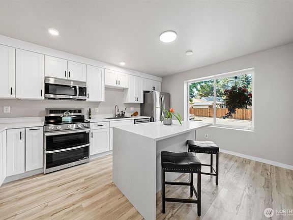 ~Single-Level Rambler in Auburn~ Welcome home to this 3 BD, 1.75 BA newly renovated rambler in Auburn featuring a 2 car garage, massive deck and spacious backyard! Updated with new LVP flooring, paint, trim, doors, hardware, light fixtures, soft-close cabinets, quartz countertops and appliances this home is turn-key and move-in ready. Just add your finishing touches! Enjoy the well appointed layout with an entry that opens up to a living room with vaulted ceilings and convenient access to the kitchen, perfect for entertaining or intimate/quiet settings. Primary en-suite with a slider door for deck access sits privately on one side of the home and separate from the other 2 bedrooms. Just minutes from ALL amenities! Tour Today.