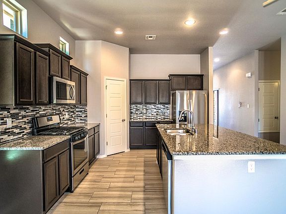 Discover this stunning brand-new modern home in East El Paso, located at 12608 Azulito, 79928. This spacious single-story residence boasts a stylish modern design, polished granite countertops in the kitchen and bathrooms, an open-concept living area with elegant tile floors, four comfortable bedrooms, and a large patio perfect for entertaining and BBQs. Situated in the desirable Mesquite Trails community, it offers convenient access to Loop 375 and the growing Zaragoza district, where you'll find top-rated restaurants, shopping centers, family entertainment, and excellent schools.