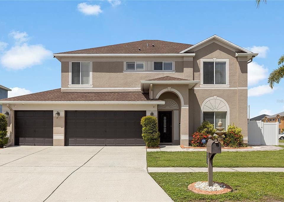 BACK ON THE MARKET - BUYER FINANCING FELL THROUGH! Now is your chance to own this beautifully maintained 4-bedroom, 2.5-bath home with a sparkling pool and 3-car garage is perfectly situated on a desirable corner lot in the highly sought-after, deed-restricted community of Summerfield Village. With low HOA fees, no CDD, and Flood Zone X, you’ll enjoy resort-style living without the added expense. Step into your own private paradise where outdoor living takes center stage. The backyard features a resort-style pool surrounded by paver decking, lush turf, and mature palms—all enclosed with a vinyl fence for privacy. The covered patio and fully equipped outdoor kitchen, complete with a grill, sink, and beverage fridge, make this the perfect space for entertaining friends or simply relaxing at home. Sliding glass doors connect the indoors to the outdoors seamlessly, creating a true indoor-outdoor lifestyle. Inside, the home offers a thoughtful and flexible floor plan designed for both comfort and function. At the front of the home, a welcoming family room and dining room provide the perfect setting for holidays and gatherings. Just off the kitchen, a cozy living room opens directly to the pool area, blending casual living with easy access to the outdoors. The kitchen itself features stainless steel appliances, a bright eat-in nook, and abundant natural light streaming through the windows. Flooring throughout the home has been upgraded for style and convenience—gleaming tile floors downstairs and luxury vinyl plank upstairs mean no carpet anywhere. The laundry room is located upstairs for added ease, and the washer and dryer convey with the sale. Upstairs, the expansive Primary Suite offers a unique bump-out space, ideal for a home office, sitting area, or reading nook. The en suite bathroom has been beautifully updated with a spacious walk-in shower, dual vanities, a separate water closet, a generous walk-in closet, and a free-standing soaking tub. All bathrooms in the home have been tastefully renovated, including the upstairs hall bath that serves bedrooms two, three, and four, as well as the charming half bath downstairs for guests. Practical upgrades ensure peace of mind, including a new HVAC system (2023) and a roof installed in 2017. The spacious 3-car garage provides plenty of room for vehicles, storage, or even a home workshop. Living in Summerfield Village means enjoying an array of community amenities such as a pool, clubhouse, fitness center, tennis courts, and even a dog park. The neighborhood’s prime location also offers convenient access to shopping, dining, schools, and major roadways. This home truly blends comfort, style, and functionality—inside and out. With its updated features, spacious layout, and resort-style outdoor living, it’s a must-see for anyone looking to call Summerfield Village home.