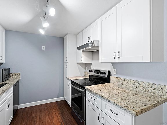 Beautiful remodeled 2BR/2BA condo in the heart of Poway. Upgrades include granite countertops, cabinets, stainless-steel appliances, wood vinyl flooring, baseboards, dual pane vinyl windows/sliding door, and master bathroom. Assigned covered carport #11 behind complex and storage room next to front entrance. Silverlake complex includes a community pool and laundry facilities. Close to Old Poway Village and park, restaurants, and top-rated Poway Unified School District.