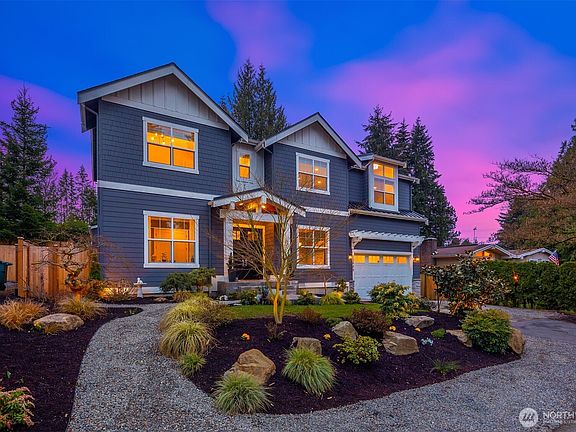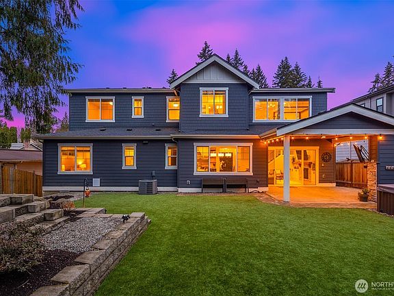 Unwind in this 2020 custom built smart home in the highly desirable Woodridge Neighborhood. Designed for comfort and style. This thoughtful open floor plan home features a sizable office and an additional en-suite on the main. At the heart of the home is an expansive gourmet kitchen with walk-in pantry, custom hood, quartz island w/ bar seating and 72 inch fridge/freezer combo. Well appointed primary suite with vaulted ceilings, gas fireplace and tranquil bath with heated floors. Retreat to the backyard and enjoy the covered patio with stone fireplace, hot tub or lush turf grass with putting green. A/C, tankless water heater and EV charger. Award winning schools: Chinook Middle and Bellevue High.