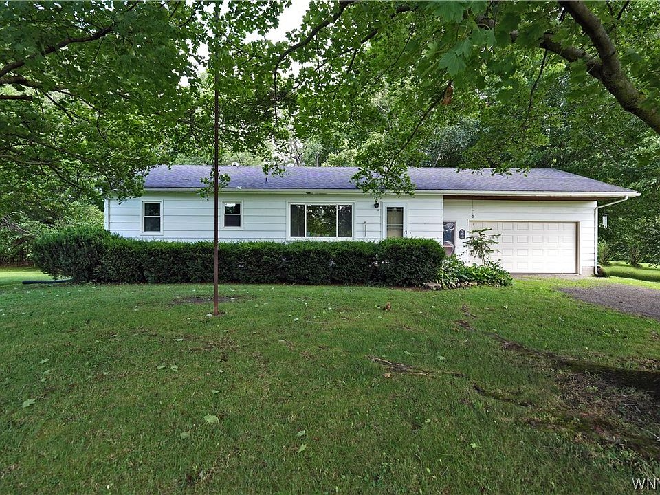 Wonderful ranch on oversized country lot with lots of trees. This home has three bedrooms, one completely updated bathroom, a large eat in kitchen. Home also features a newer roof, a new pump for the well, new windows 2021 and garage door 2023. New well drilled in 2020, New furnace and hot water tank in 2023.