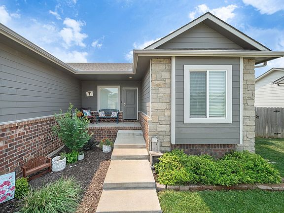 Beautiful 5-Bedroom Ranch with Split Bedroom Layout & Exceptional Outdoor Features in the Goddard School District! Welcome to this spacious and thoughtfully designed newer ranch home featuring 5 bedrooms and a highly desirable split bedroom floor plan. With 3 bedrooms located on the main level and 2 additional bedrooms in the finished view-out basement, there’s room for everyone and everything. The heart of the home is the open concept kitchen, which seamlessly flows into the living space, it's perfect for entertaining and everyday living. You'll love the eating bar, convenient prep island, and large walk-in pantry offering ample storage. Just off the kitchen, the main floor laundry connects directly to the luxurious four-seasons master closet, providing both comfort and efficiency. The finished basement offers even more space to spread out, with a generous XL rec/family room complete with a stylish wet bar—ideal for hosting game nights or movie marathons. Step outside and enjoy the fully fenced backyard oasis. A well-fed sprinkler system keeps the lush lawn looking its best, while the bonus shed offers extra storage for tools and toys. Your kids will love the private sport court and custom putting green perfect for active fun right at home. Additional features include a 3-car attached garage, privacy fencing, and a quiet neighborhood setting. This home truly offers the perfect blend of function, comfort, and outdoor enjoyment!