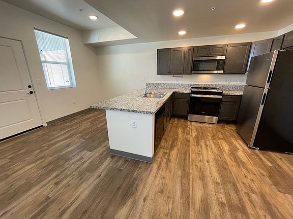 Modern 2 bedroom, 1 bathroom apartment with a garage. Almost new build. Great location. Views all around. This particular unit is ADA Class C Compliant with a 1 car garage that is also ADA compliant. Upgraded appliances. Accepting applications now! Don't miss out on the opportunity to live in this beautiful, classy complex. Updated photos coming soon. 12 month lease with the option to extend. Dogs welcome upon approval. Upgraded appliances. ADA Class C Compliant. ADA compliant garage with this apartment.