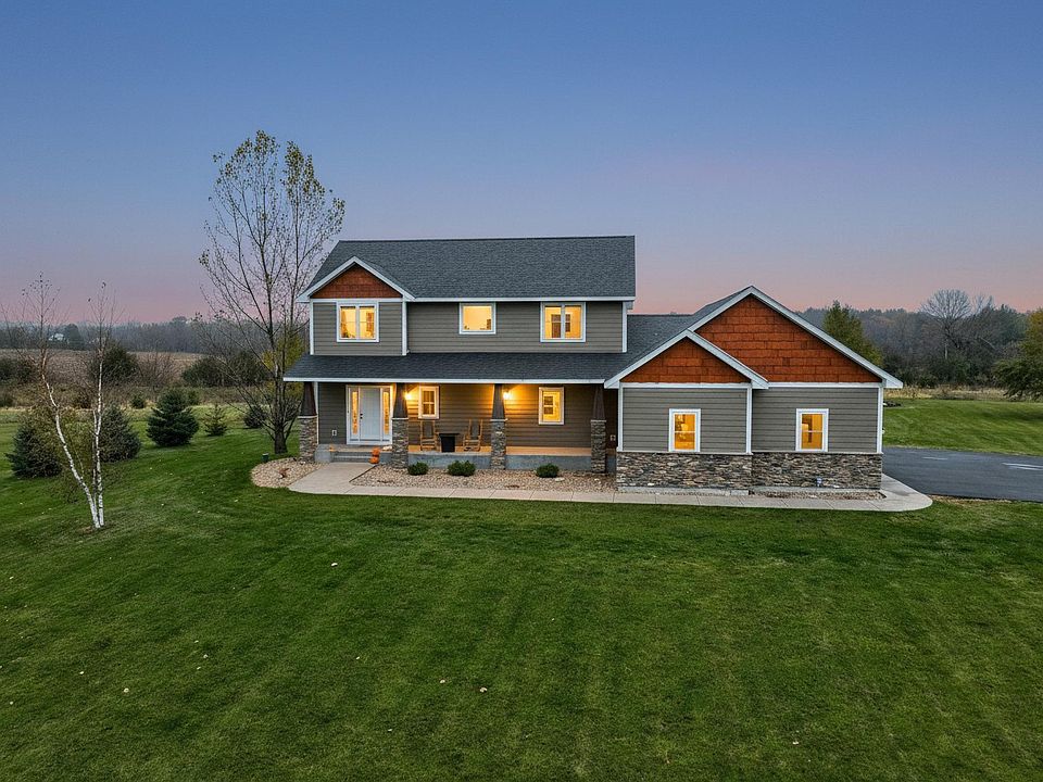 Welcome to 1261 84th Street — a beautifully-built home on nearly 3 acres in the desirable Natalie’s Ridge neighborhood. Built in 2014 and recently updated with a new roof (2025), appliances, finishes and new lower level family room, the list goes on! This property blends timeless craftsmanship with updated design and efficient living. Enjoy the peaceful setting near a cul-de-sac, with easy access to Hudson, Stillwater, New Richmond, and Somerset. Inside, you’ll find beautiful woodwork and an open layout centered around the cozy gas fireplace. The custom kitchen features granite countertops, stainless steel appliances, a center island, and a large walk-in pantry—ideal for cooking, dining, and entertaining. Upstairs includes three spacious bedrooms, including a private primary suite with a walk-in closet, dual sinks, and a full bath, along with convenient upper-level laundry. The newly finished lower level adds even more space with a comfortable family room, a second gas fireplace, and a wet bar—perfect for gatherings or relaxing nights in. Outdoors, enjoy a large, level yard, expanded garden area, and plenty of room to appreciate the surroundings. Additional highlights include a heated four-car garage, efficient natural gas utilities, and high-speed fiber internet. Part of the Hudson School District, this home offers a blend of comfort, quality, and modern updates in a serene country setting just minutes from anything you may need. Welcome Home!
