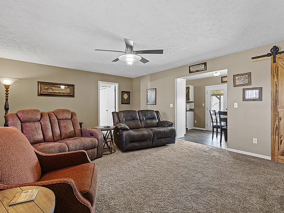 WOW! Beautiful one level home in a peaceful setting on 3.38 flat acres with detached garage-workshop, carport, barn, and outbuilding that's currently used as an office. This home offers 2 bedrooms and 2 bathrooms with an office that could be used as a flex space.The seller has put their heart and soul into caring for this property. Many updates include: paint, carpet, windows, gutter max gutters, custom blinds, kitchen countertops, kitchen cabinet fronts, refrigerator, low profile shower in the primary bedroom, light fixtures, faucets, covered back porch with breezeway opening, carport, 2 lean-tos off the barn, fencing & gate, front porch posts and railings, additional stairs added off the back porch and an updated wheelchair ramp, along with exterior dawn to dusk lights. This unique home with property is definitely one you don't want to miss!