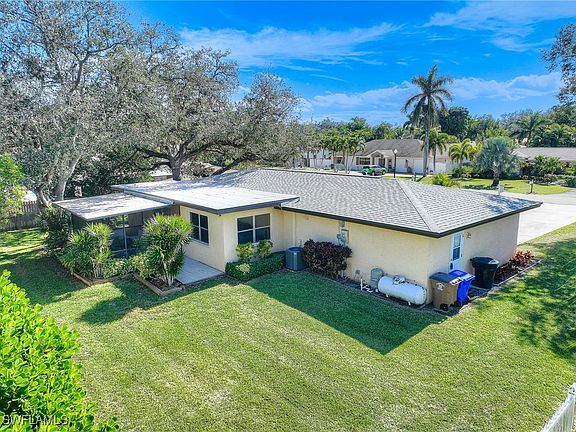 Come see this fantastic home centrally located right off McGregor Blvd. It is a stones throw away from the river but far enough to remain HIGH & DRY through all the storms. This charming 3 bedroom, 2 bath home features a wonderful screened lanai which lets you take full advantage of our fabulous Florida weather, and has one of the nicest yards in Fort Myers. The yard has tons of mature trees and is partially fence with an automatic sprinkler system, on a well, to keep your costs low. The home itself has a wonderful open floor plan and has been meticulously maintained. New vinyl flooring was just installed in the kitchen and bedrooms, and the home also features solid wood 6 panel doors throughout, and real wood cabinets in the kitchen. Impact windows were installed as well as additional storm shutters in the front of the house for added protection. The roof was replaced in December of 2024 and the plumbing has also been updated. A gas water heater and a gas dryer help keep costs low, and the work bench in the garage, and ample storage is definitely a plus. This home truly is move in ready! Come see this beautiful home in person, it does not disappoint!