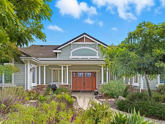 CUSTOM cul-de-sac Single Story Craftsman VIEW home on a sprawling and useable 1.44 acres. SOLAR! 3 car attached garage. 4 Bedroom plus large room for office/bedroom (no closet) and 3 full baths. Formal Entry into spacious living area with high ceilings, fireplace and picture window for a sunrise view to the easterly Escondido mountains. Formal dining room has butler's pantry and wine refrigerator. Chef's kitchen that opens to family room has 2 dishwashers, sub zero refrigerator, farm sink, vegetable sink, 6 burner gas stove with pot filler. LARGE walk in pantry. One Bedroom and full bath at one end of home and primary bedroom suite with oversized walk in closet and sumptuous bath at other end along with 2 other large bedrooms that share a hall bath. Ceiling fans throughout home. Laundry room has washer/dryer and sink just inside the door from the large 3 car attached garage with storage. Above ground spa out the sliding door from the primary bedroom. Chickens can remain on the property if tenant wishes to take care of them.