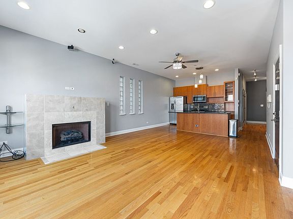 WELCOME HOME! This stylish, sunlit condo located in the historic Kenwood neighborhood has everything you have been looking for in a new home. Step into this spectacular, spacious two-bedroom, two bath condo featuring an open floor plan with 10 ft. ceilings, hardwood floors, gas fireplace, new light fixtures and Sony surround sound system. This contemporary condo contains a comfortable kitchen complete with stainless-steel appliances including a Bosch dishwasher, granite countertops, island with breakfast bar, and 42-inch cabinets.  The primary bedroom includes a lighted recess ceiling and an en-suite bathroom with double sinks and whirlpool tub. This home also features an in-unit washer/dryer, ample closet space throughout, private storage space, large rear balcony great for entertaining, and a secure garage parking space. Close walk to Lake Michigan, parks, bike trails, express CTA buses, Metra, gyms, schools, shops and restaurants. Minutes away from Whole Foods, Hyde Park, Trader Joe's, University of Chicago, museums and downtown Chicago. Home Warranty included.