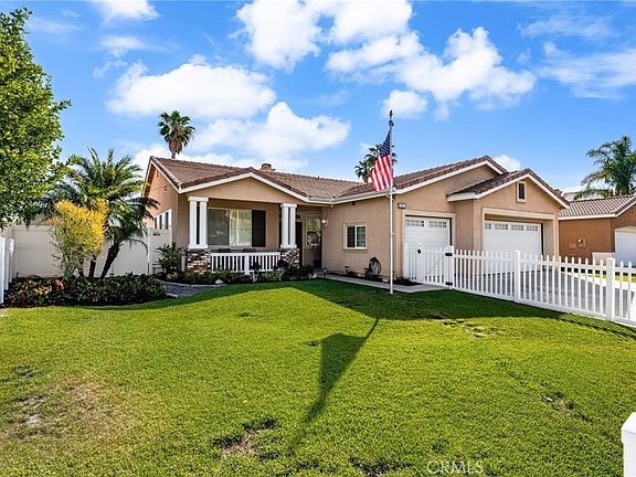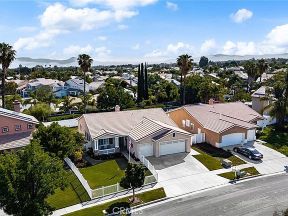 Welcome to a coveted single-story lifestyle in this 4 bedroom home, nestled within a serene community.The meticulously landscaped property with white picket fencing to the inviting front porch,every detail of this residence exudes warmth and charm. Step inside and experience the sophistication of an open-concept floor plan, where elegant finishes and thoughtful designed elements combine to create an atmosphere of comfort and relaxation. Upon entry, the gorgeous double entry door sets the stage for the refined interior that awaits. Wood-look tile floors seamlessly flow throughout the complete home. Tall ceilings enhance the sense of Brightness, space and openness, creating an airy ambiance that is both welcoming and inviting. The generous family room, adorned with a stacked stone fireplace, provides a cozy retreat. Adjacent to the family room is the granite counters, abundant white cabinetry, pantry and a convenient large center island and ample meal prep space. Retreat to the luxurious and bright primary suite, where pure relaxation awaits. The updated primary bath boasts a recent remodel featuring an inviting standalone soaking tub and walk in shower. Dual vanities with granite countertops offer plenty of space for pampering, while the large walk-in closet provides ample storage for wardrobe essentials. The three additional bedrooms are generously sized. The second full bath features a granite dual vanity and an updated and tub/shower combination, ensuring convenience and comfort for all residents and guests. Step outside to the fully covered alumawood patio, where alfresco dining and lounging await. Beautiful lush grassy yard and gardens provides plenty of space for outdoor activities and enjoyment with new vinyl privacy fencing, while a large tuff-shed tucked around the side of the home holds all your supplies. The nearby walking path invites leisurely daytime and evening strolls throughout the neighborhood. This pristine home offers a pleasant white palette,with desirable updates such as wood tile flooring throughout,Custom white wood shutters, new vinyl fencing(rear), white vinyl picket fence (front), thermatically controlled attic and garage fans and solid alumawood patio cover. The 3 car garage affords ample space for your vehicles, shop or gym. This home has the most amazing setting with no neighbors behind and close proximity to Skyline Drive Hiking trail, 91,71 & 15 Frwy's, great schools and shopping.This is everything you have been waiting for!