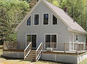 Like new cozy chalet home tucked back from the road in lovely wooded setting. Wrap around porch and oversized 40x60 garage with endless possibilities. Meticulously maintained and located in Downtown Village District which would permit some business use. Close to recreational lakes!