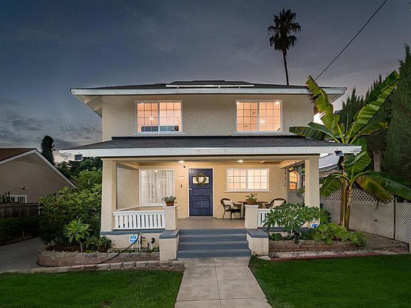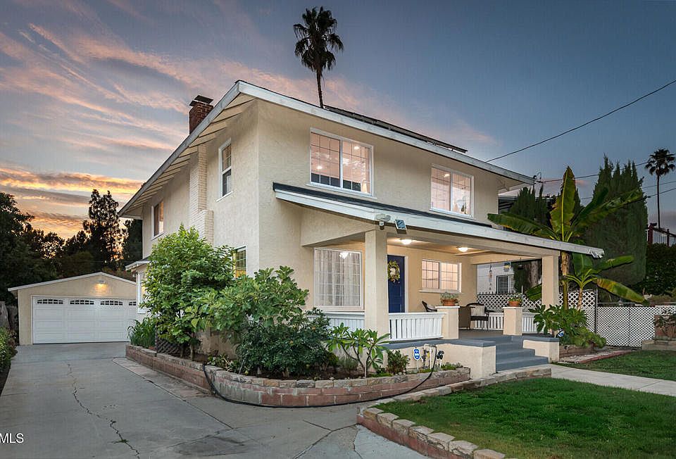 A thoughtfully landscaped front yard with succulents and fruit trees introduces this Pasadena bungalow, blending timeless character with modern updates. The welcoming covered porch opens to a spacious living room anchored by a fireplace and filled with natural light from large windows. Oversized pocket doors lead to the formal dining room with built-in cabinetry, creating a warm and inviting setting. An arched opening with a peninsula connects seamlessly to the expansive kitchen, equipped with stainless steel appliances, a window overlooking the outdoors, and direct access to the backyard.Just beyond the kitchen, a 3/4 bath with dual sinks and a separate water closet with shower opens to a large laundry room, combining function and convenience. A connecting hallway, accessible from both the kitchen and the living room, leads to a bedroom, the staircase to the second floor--illuminated by a large window--and access to the basement, currently staged as a media and creative studio with space for music, streaming, or recreation.The upper level offers four bedrooms, including a spacious primary bedroom. The additional bedrooms provide flexibility for family, guests, or a home office. A walk-in hallway closet and a 3/4 bath complete the second floor.Outdoor living includes an expansive fully covered paved backyard, thoughtfully designed as an all-weather retreat with generous space for lounging, dining, and play. A finished detached garage adds further versatility, ideal as a studio, workshop, or gym.Notable upgrades include solar panels for energy efficiency, a whole-house water softener, newer condenser, refinished wood floors, new attic insulation (2025), new roof (2025), dual-pane windows, and an EV charger outlet.Centrally located, this home is minutes from the Rose Bowl, Brookside Park, Old Town Pasadena, Lake Avenue shopping and dining, Caltech, and cultural landmarks, offering the perfect blend of Pasadena's architectural heritage and modern living.