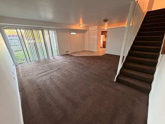 Freshly painted 3 bedroom 1.5 bathroom apartment located in a quiet, well-kept complex. Featuring plush carpet in a spacious living space, and beautiful hardwood flooring in each bedroom. A private front patio and a large, one car garage make for a perfect pair in the front of the unit. Extra parking is available outside of the unit as well! Lawn/snow/leaves taken care of by the owner. In unit laundry hook ups in a large laundry/utility room. One bathroom on each floor.