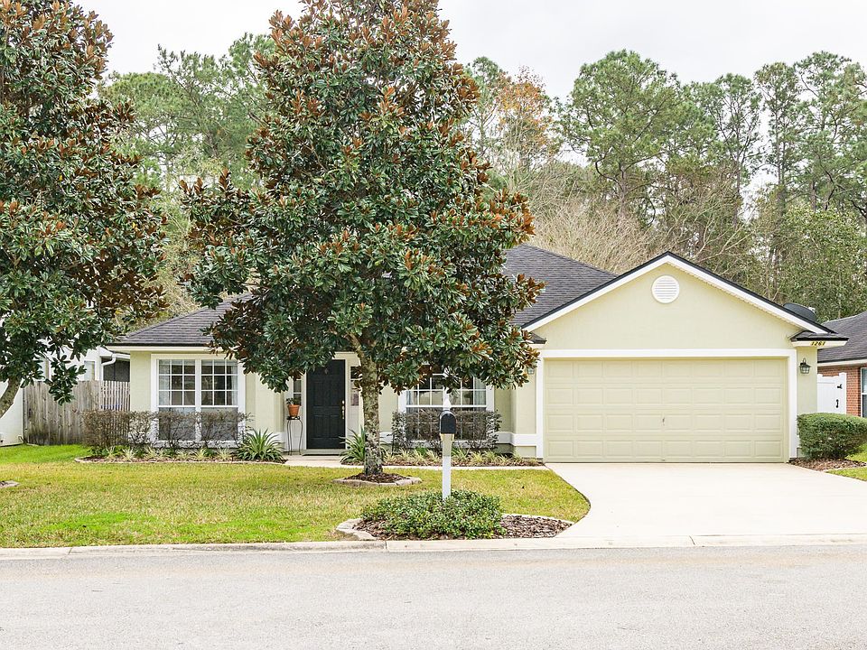 Come live behind the 24-hr guarded gate in coveted Plantation Estates. A beautiful home that's move-in ready with fresh paint inside and out and no carpet to worry about cleaning or replacing. Vaulted ceilings and generously-sized windows give this home a bright and spacious feeling. A larger than average .28 of an acre preservation lot, will have you designing a backyard oasis that's the envy of your neighbors! This unique community located within Julington Creek Plantation, has it's own community pool & playground. You'll also have access to the JCP Recreation Center, which features pool(s), tennis, gym, group fitness classes, basketball, skateboard park and much more.