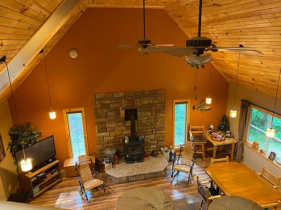 RARE IN LAKE CUMBERLAND!! Lake front property with a large walking path to the water sitting on 1.47 acres. Jump into your boat or kayak and have fun. Beautiful custom built log home with a year round view of the lake. Huge detached garages. Vaulted ceiling 4B/3B home with a big tiled kitchen with Stainless steel appliances. The second floor overlooks the great room. A wrap around deck with a fire pit over looking the lake. Walkout newly finished basement. This home can not only be an excellent peaceful vacation home but could also make a perfect VRBO or Airbnb, just minutes from Burnside Marina!!! Sellers will provide a year Home Warranty on a full price offer.