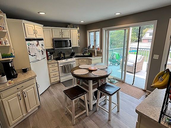 Utility sinkFenced in backyardFirst floor laundryFinished basementOne car attached garageNew roofSliding glass door