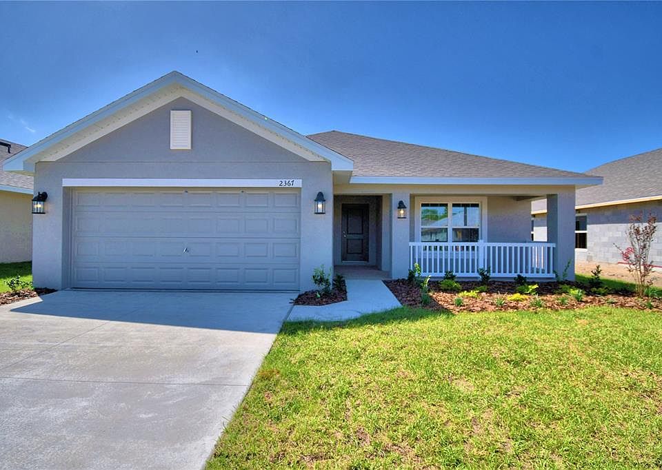 Under Construction. This BRAND NEW home has 3 bedrooms and 2 baths, 2 car garage, and Lots of entertaining space throughout! Upon entering you will enjoy the open concept great room/kitchen with breakfast bar and vaulted ceiling, formal dining room, master suite with private bath and private lanai entry, and covered back lanai. Nice vibrant color. Energy efficiency features throughout and so much more! Magnolia Park is a great community with community pool, just off US 17 (Scenic Hwy), Hwy 27 and just minutes from Lake Eva park and Event center. Photos are of a finished 1970 example. Colors and finishes may vary. Not actual home.