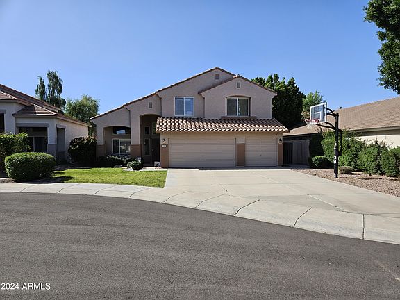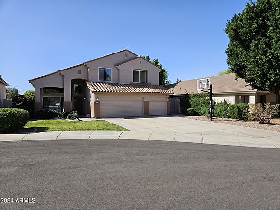 Cul-De-Sac lot home with a pool and 2 NEW AC UNITS! This home is ready for it's new family! 5 bedrooms, 3 baths - 4 bedrooms up and 1 down. 2 NEW HVAC units (2023), NEW garage openers (2024), Newer pool pump (2021), NEW Water heater (2023), NEW water softener (2022). This home is in a great neighborhood walking distance to the park - just around the corner. Plenty of storage up and down, 3 car garage, nice size yard PLUS a pool! Huge driveway with a basketball hoop. Large cul de sac for bike riding and playing out front, inviting front porch, kitchen that overlooks the back yard so you can see the kids swimming and playing, outdoor eating area, large side concrete slab with gate for extra toy storage, and more! Just minutes from the 202, Downtown Chandler, Chandler Mall, and schools.
