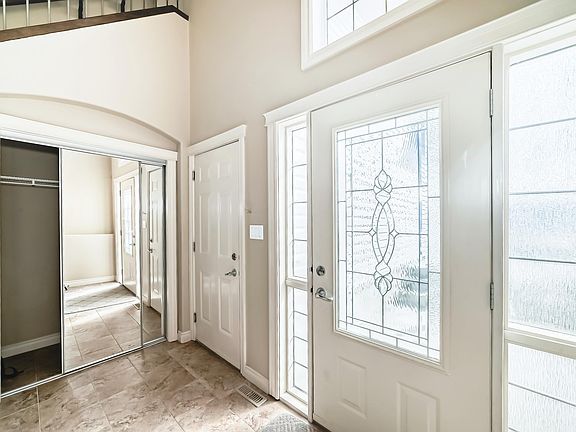 Tamaya Wynd Estates in West Rutherford is ideal for couples or families. Minutes from Anthony Henday Heritage Valley exit & numerous amenities in Heritage Valley Town Centre. Builder's size 1420 SQ FT upper and 865 SQ FT lower level. Main floor features 10' ceilings with an open concept kitchen with nook, family room and area that can be used as a formal dining room or home office + one bedroom & full bath. Upstairs is the master suite with ensuite featuring a separate shower and soaker tub with a large walk-in closet. Basement has an open rec room, two additional bedrooms, full bath and laundry room. New efficient tankless water heater installed 2024 (Model NPEA2). The unit backs onto a private acreage, offering privacy to enjoy the deck with natural gas barbecue hookup. Condo fees include exterior maintenance including snow removal, landscaping, irrigation & common area insurance. Electric fireplace in basement & gas fireplace on main floor. AC. Floorplan from builder's materials for layout reference.